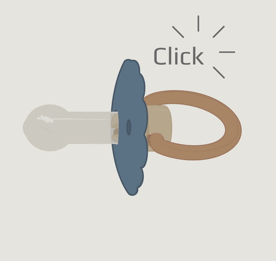 Gracias al pensamiento innovador y la tecnología asombrosa, hemos ideado una forma nueva y más inteligente de ensamblar nuestros chupetes FRIGG. Una forma que permite ensamblar las 5 partes diferentes del chupete FRIGG con un simple clic, sin usar fuerza alguna. Esto hace que nuestro nuevo chupete sea más duradero que antes.