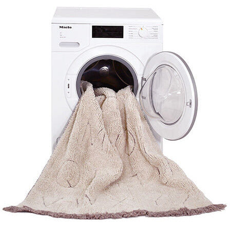 Lavar a máquina (capacidad 6 kg o más) por separado en programa delicado a 30ºC sin blanquear.