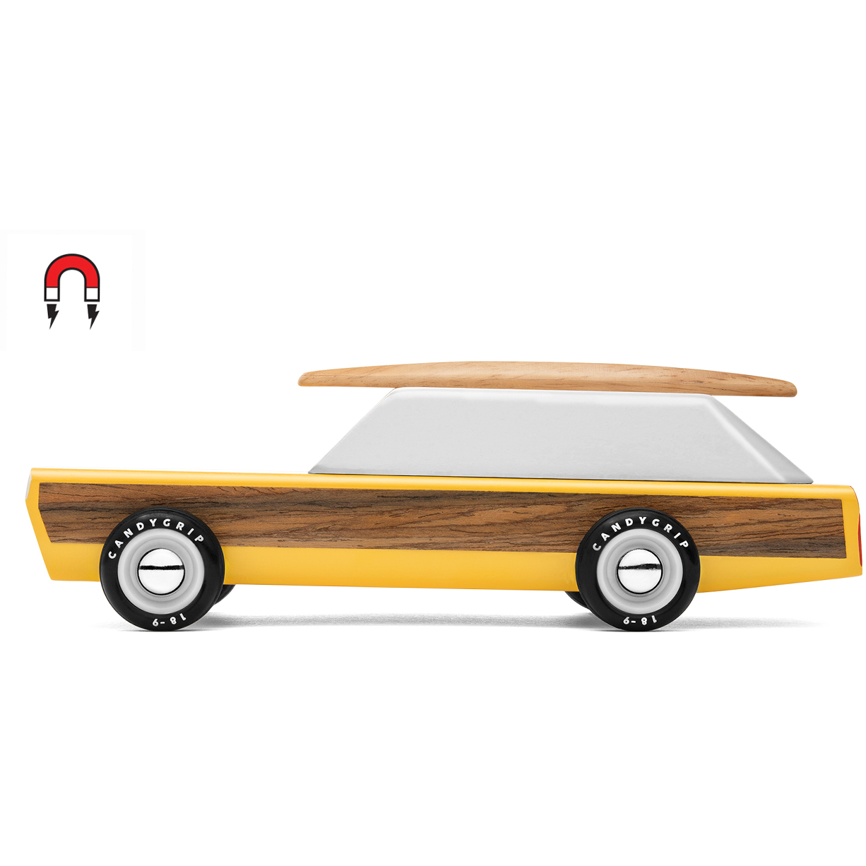 El más clásico de los clásicos, de esto están hechas las leyendas. Con lados revestidos de madera de nogal real y un imán incrustado en el techo, viene con una tabla de surf que encaja en él. Este automóvil también cuenta con un gancho de remolque magnético, lo que le permite enganchar nuestro igualmente impresionante remolque. |