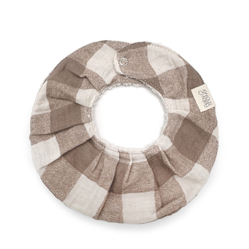 Babero secababitas en forma de volante que combina un lado de asa algodón con otro de rizo.