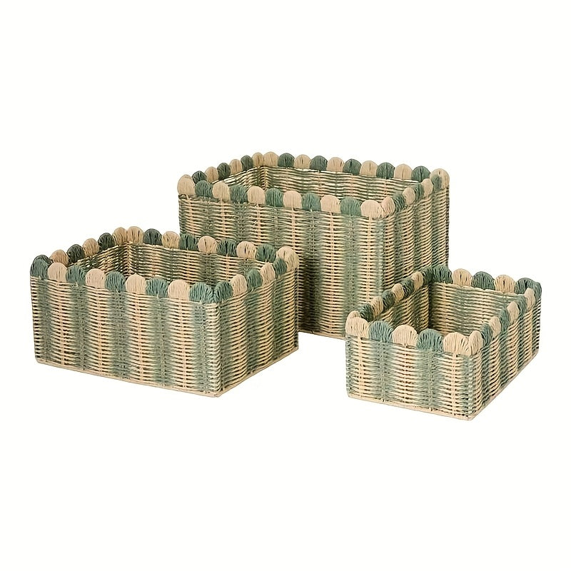 Con toda la tendencia "scalloped" estos canastos llegan a ser los protagonistas de tus repisas! Disponibles en 3 prácticos tamaños