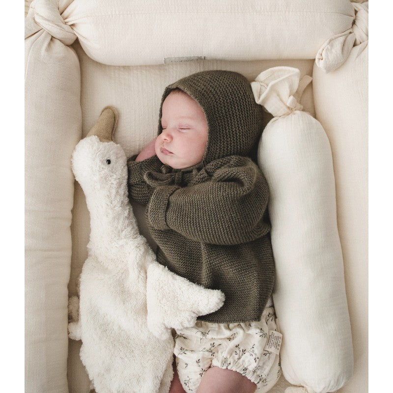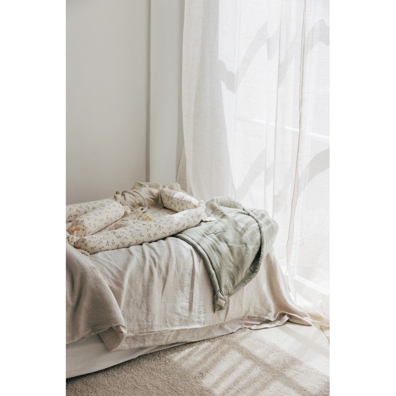Cojín en forma de bombón para evitar que el niño vuelque. Actúa como barrera protectora impidiendo que los bebés se giren sobre su costado y se queden boca abajo. Sin embargo, los cojines antivuelco dejan libre la cabeza del bebé para que pueda moverla y tenga distintos puntos de apoyo, favoreciendo así el desarrollo del cráneo.