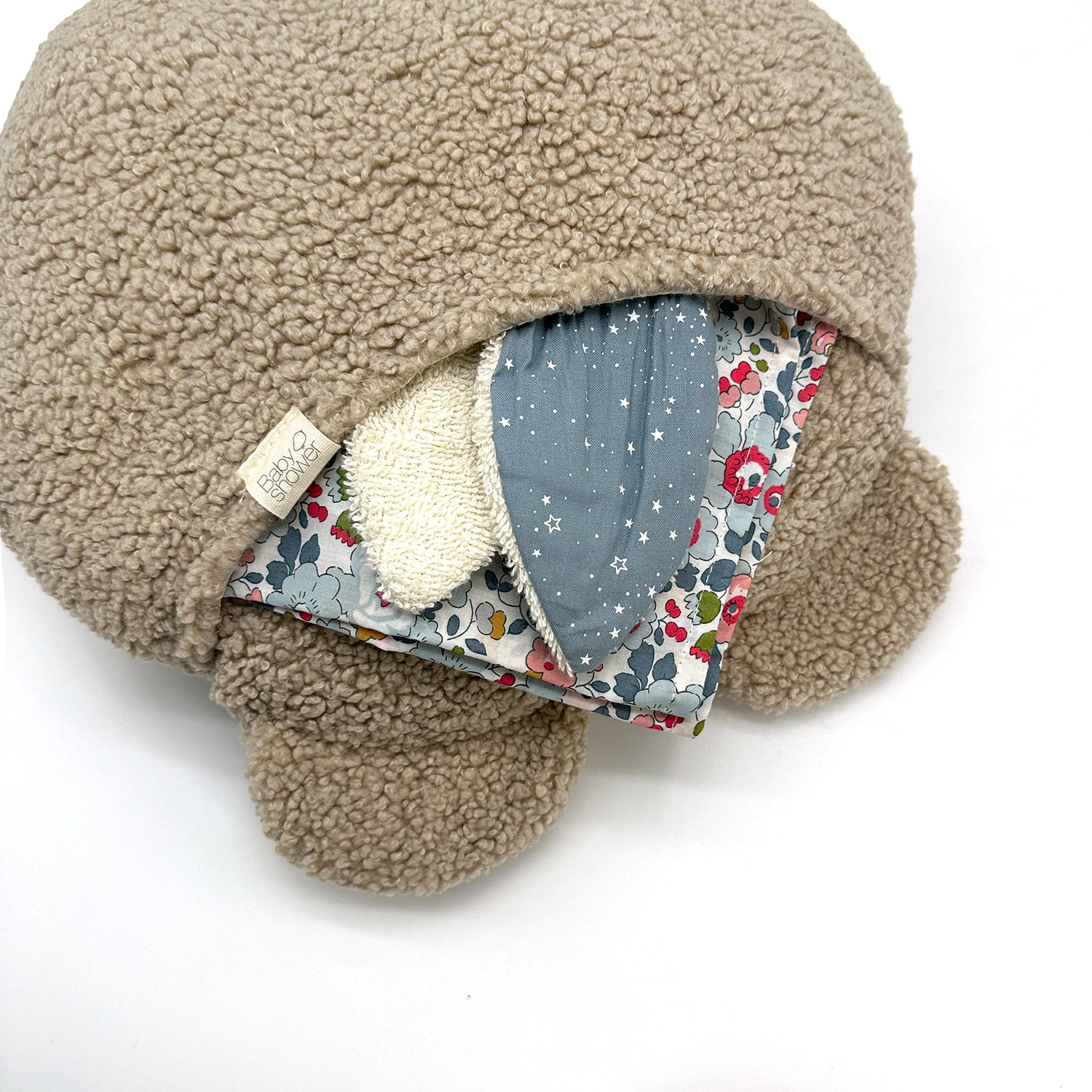 Cojín Teddy perfecto para guardar el pijama de tu bebé en su bolsillo.