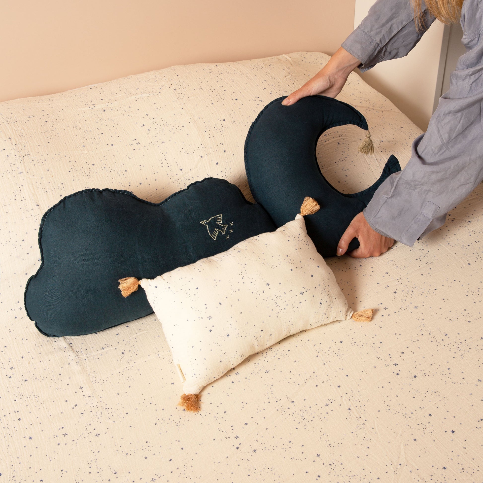 El cojín luna de Nobodinoz está fabricado en 100% lino francés certificado.