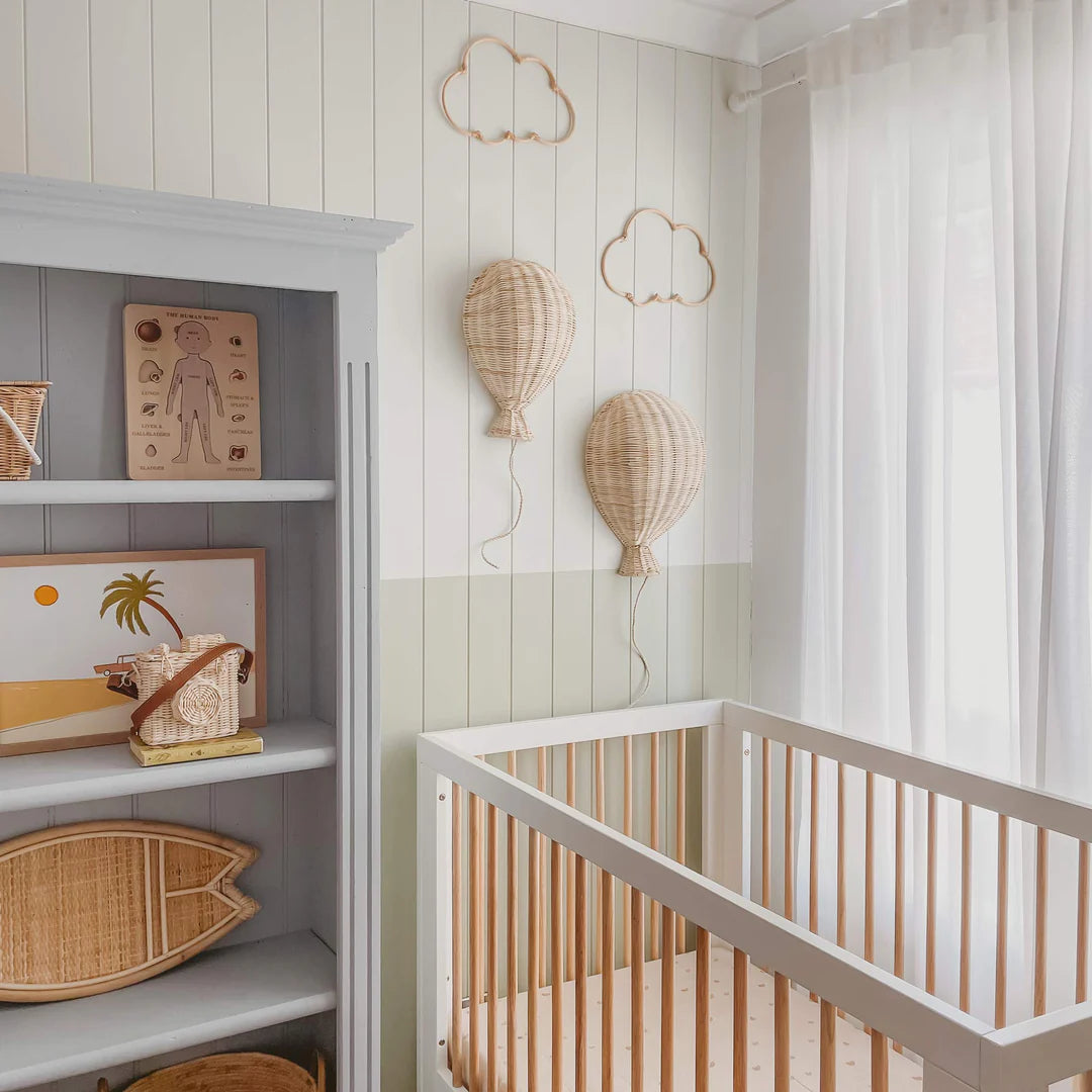 Transforma la habitación de tu hijo en un mundo mágico con nuestros Globos Colgantes de Rattán. Hechos a mano con rattán natural cuidadosamente tejido, estas encantadoras decoraciones de pared aportan calidez, textura y un toque lúdico a cualquier dormitorio infantil, nursery o sala de juegos.