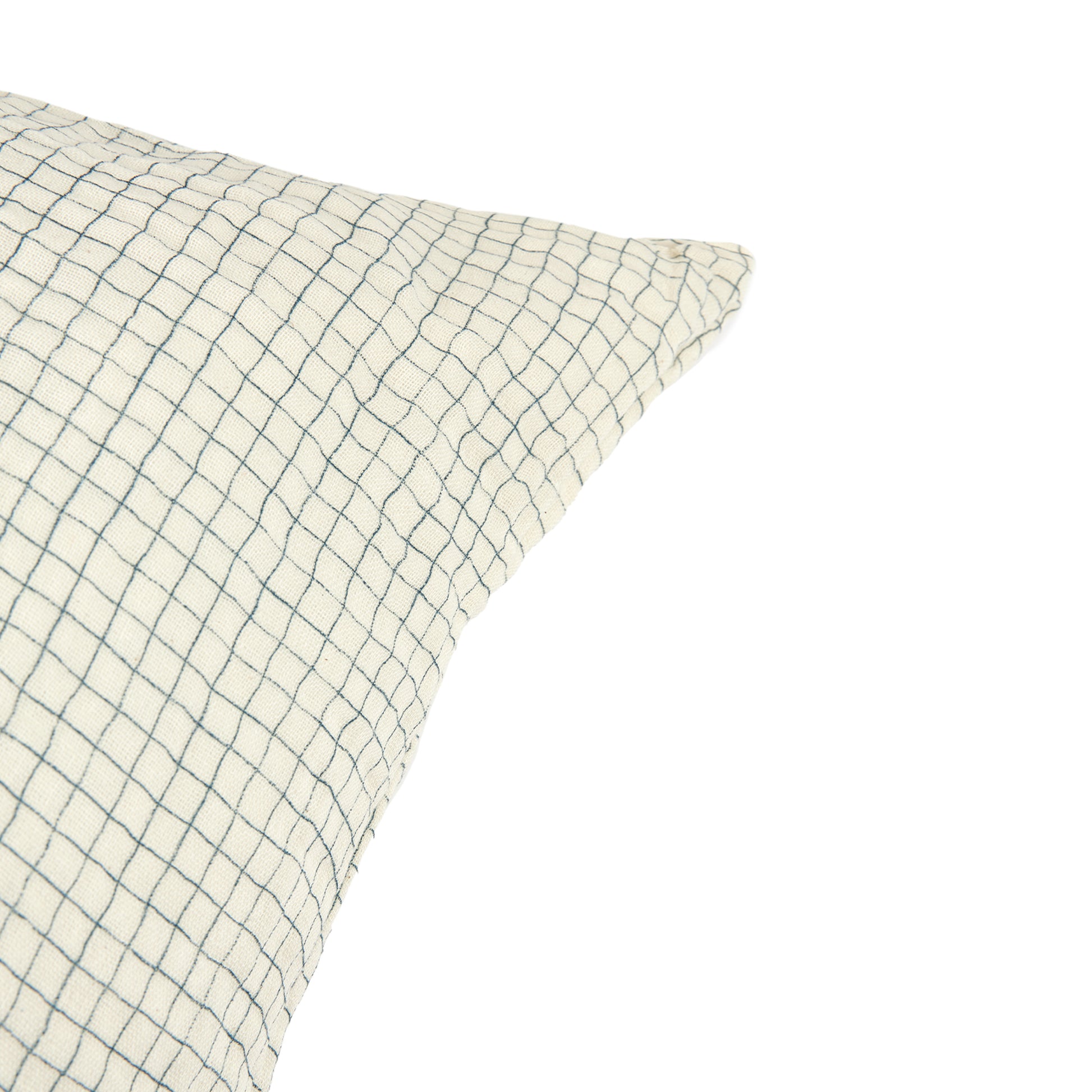 Funda de almohada Wabi Sabi (Doble gasa algodón lavado) 60 x 60 cm - Blue Grid