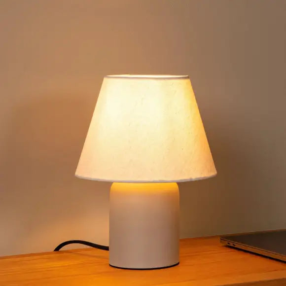 La lámpara de mesa toddy añade un toque natural y refinado a tu hogar. Con su elegante base de cerámica y su pantalla de lino beige, esta lámpara irradia elegancia atemporal. La forma cónica de la pantalla y su tamaño compacto la convierten en una opción ideal para poner sobre un velador o escritorio. La lámpara es fácil de usar gracias al interruptor de encendido/apagado en el cable y es adecuada para ampolletas LED E14. ¡Ilumina tu hogar con estilo con la versátil y decorativa lámpara de mesa toddy!