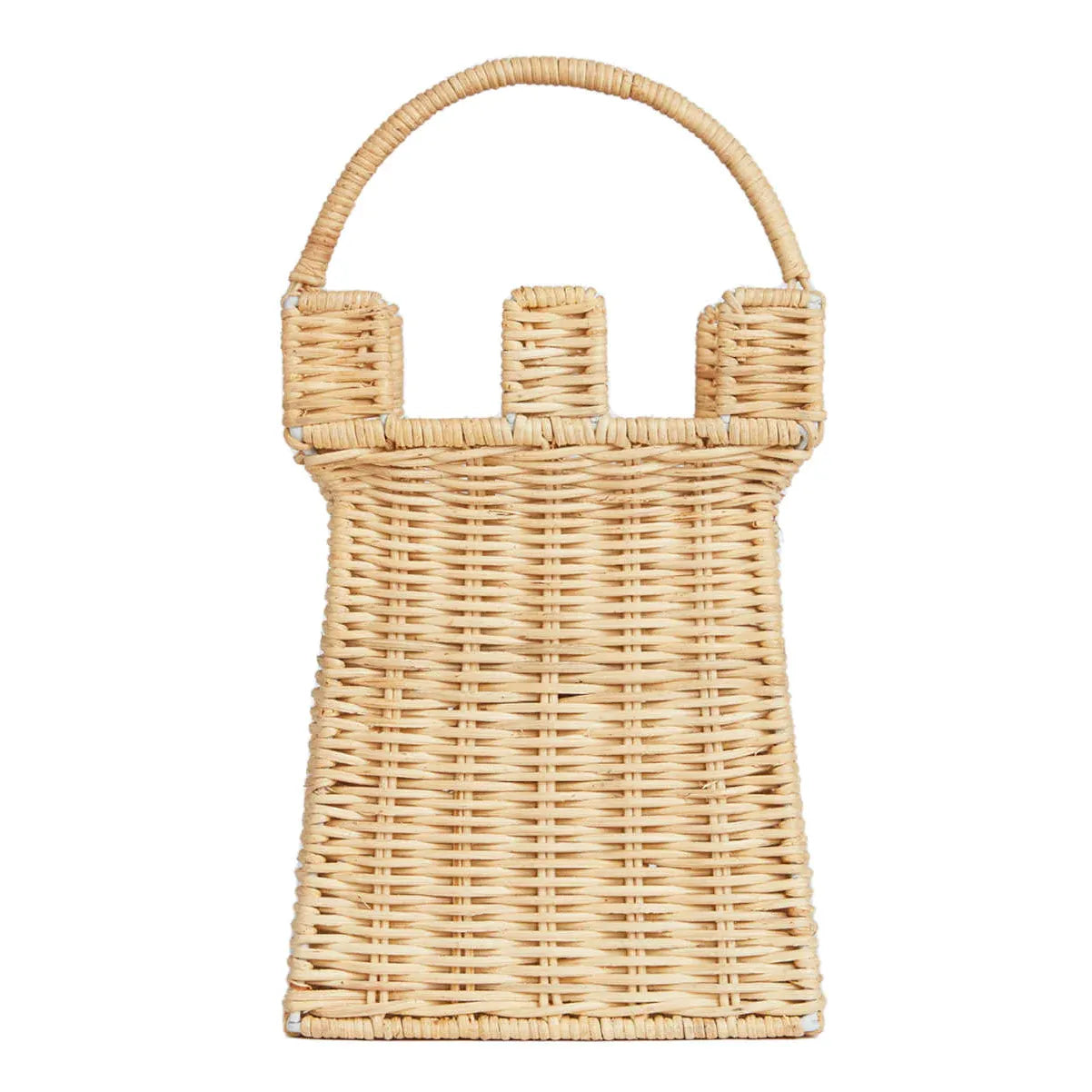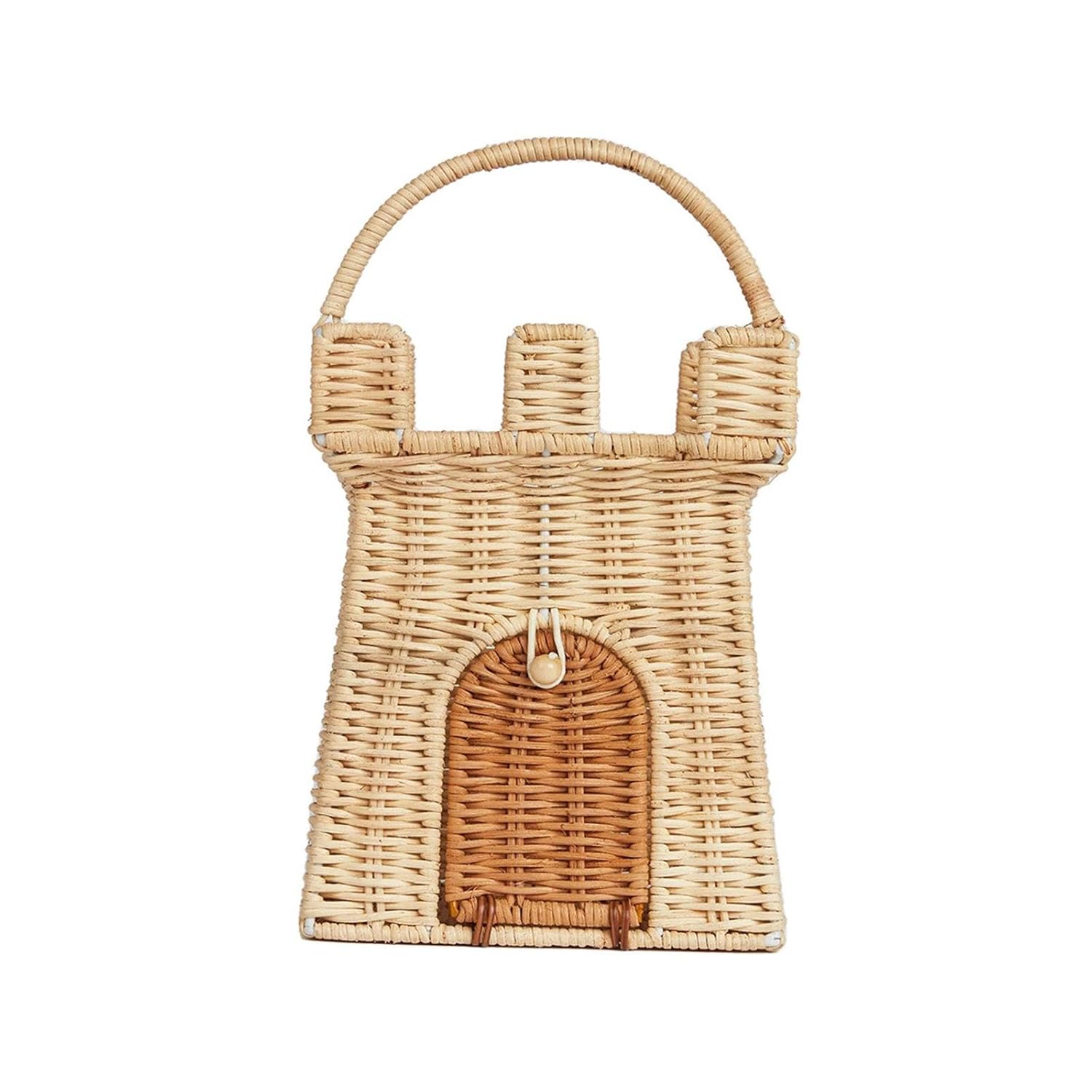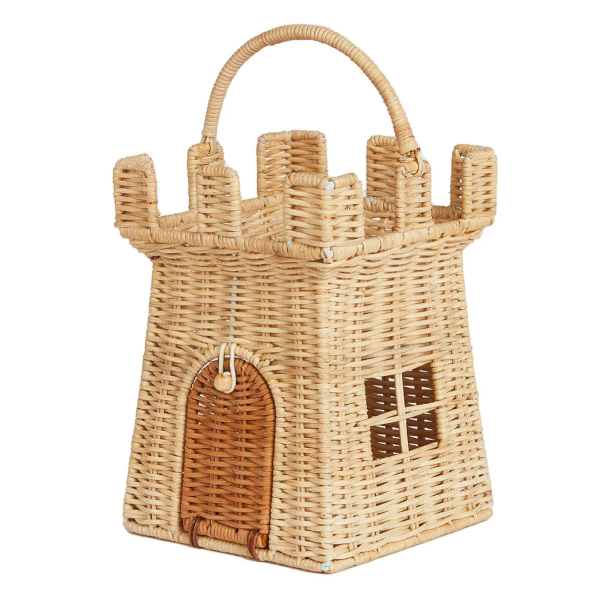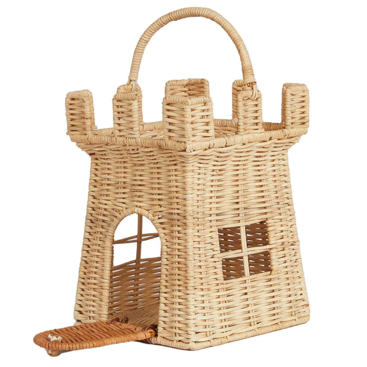 Maleta con forma de castillo hecha 100% en rattán, preciosa para decorar un dormitorio infantil, guardar pequeños tesoros en su interior o jugar con los lindos ratoncitos de la marca maileg!