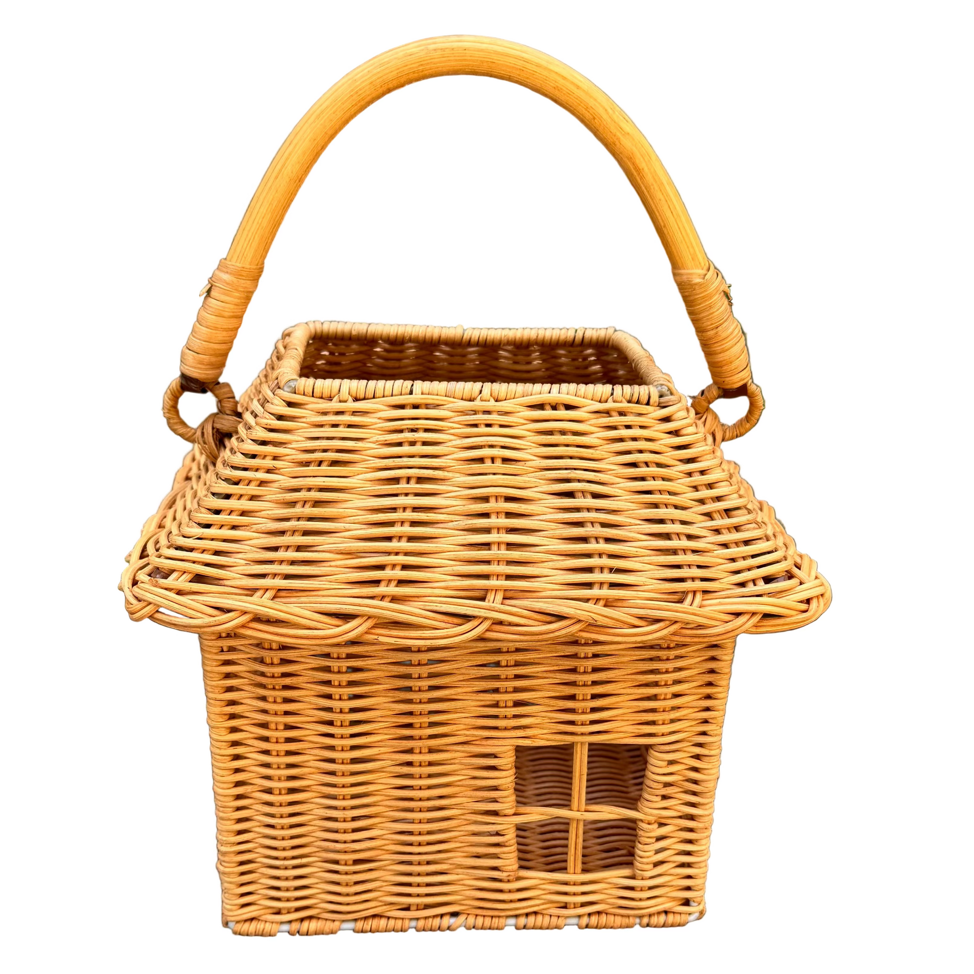Maleta con forma de casa hecha 100% en rattán, preciosa para decorar un dormitorio infantil, guardar pequeños tesoros en su interior o jugar con los lindos ratoncitos de la marca maileg!