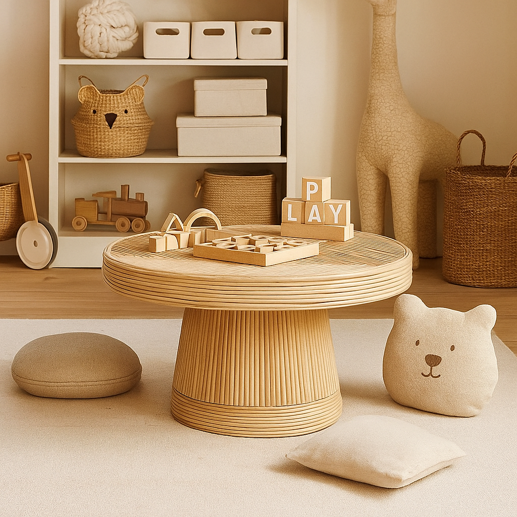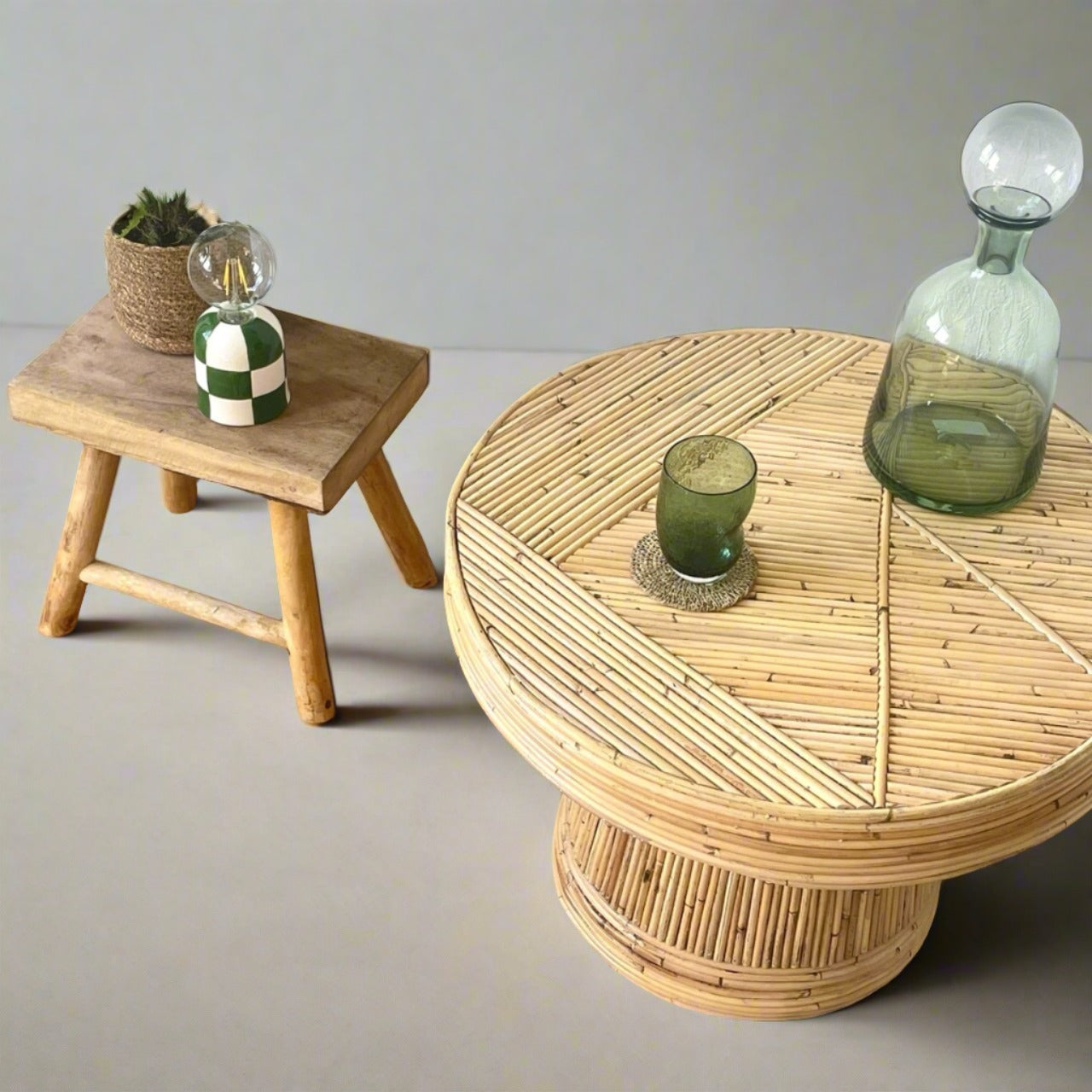 Maravillosa mesa de centro hecha 100% en bambú con diseño geométrico.