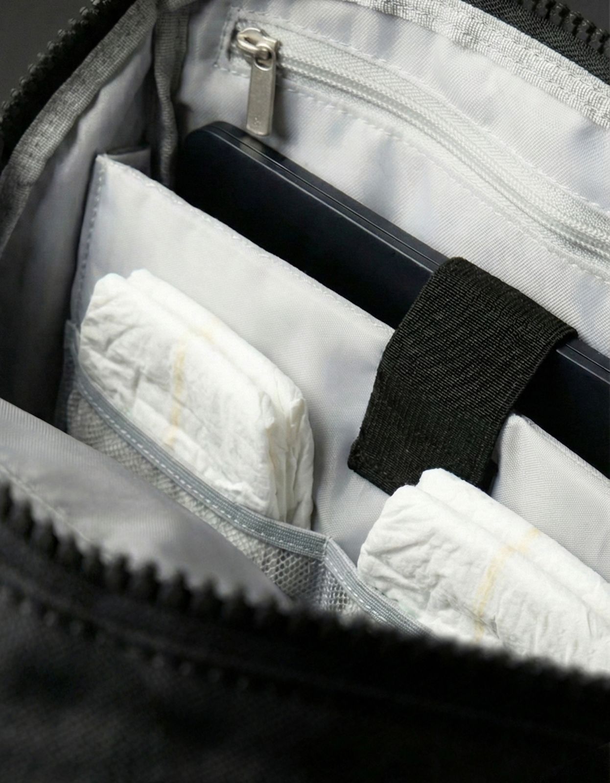 Interior de Alta Visibilidad: Forro gris claro resistente al agua. Encuentra el chupete o las llaves en segundos, y limpia cualquier derrame con un paño.