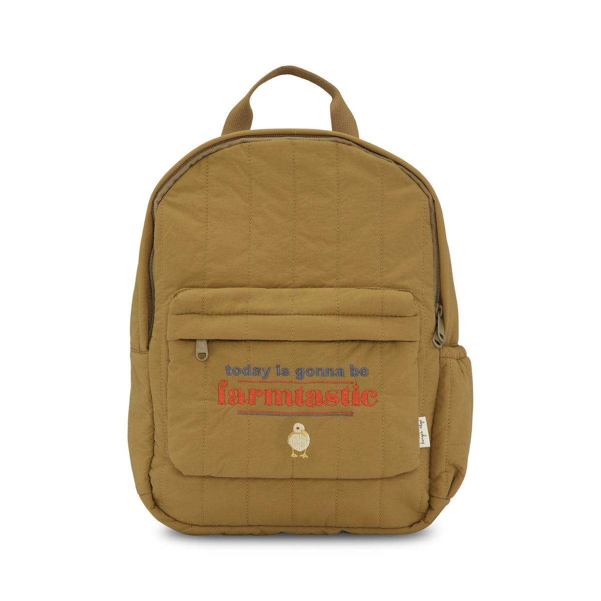 Mochila repelente al agua y espaciosa. Un bolsillo externo para botellas mantiene el agua del niño al alcance de la mano. Una correa para el pecho asegura que la mochila sea cómoda y apoye la espalda. La mochila es muy ligera, lo cual es un factor ergonómico importante. En la parte superior tiene un colgador de bucle sólido para sujetar o colgar en un estante. Dentro del compartimento grande de la bolsa, puede escribir el nombre del niño y tres bolsillos pequeños facilitan el mantenimiento del orden. La mochila se puede usar todo el año ya que está hecha para resistir el clima errático, repele la suciedad y es fácil de limpiar.