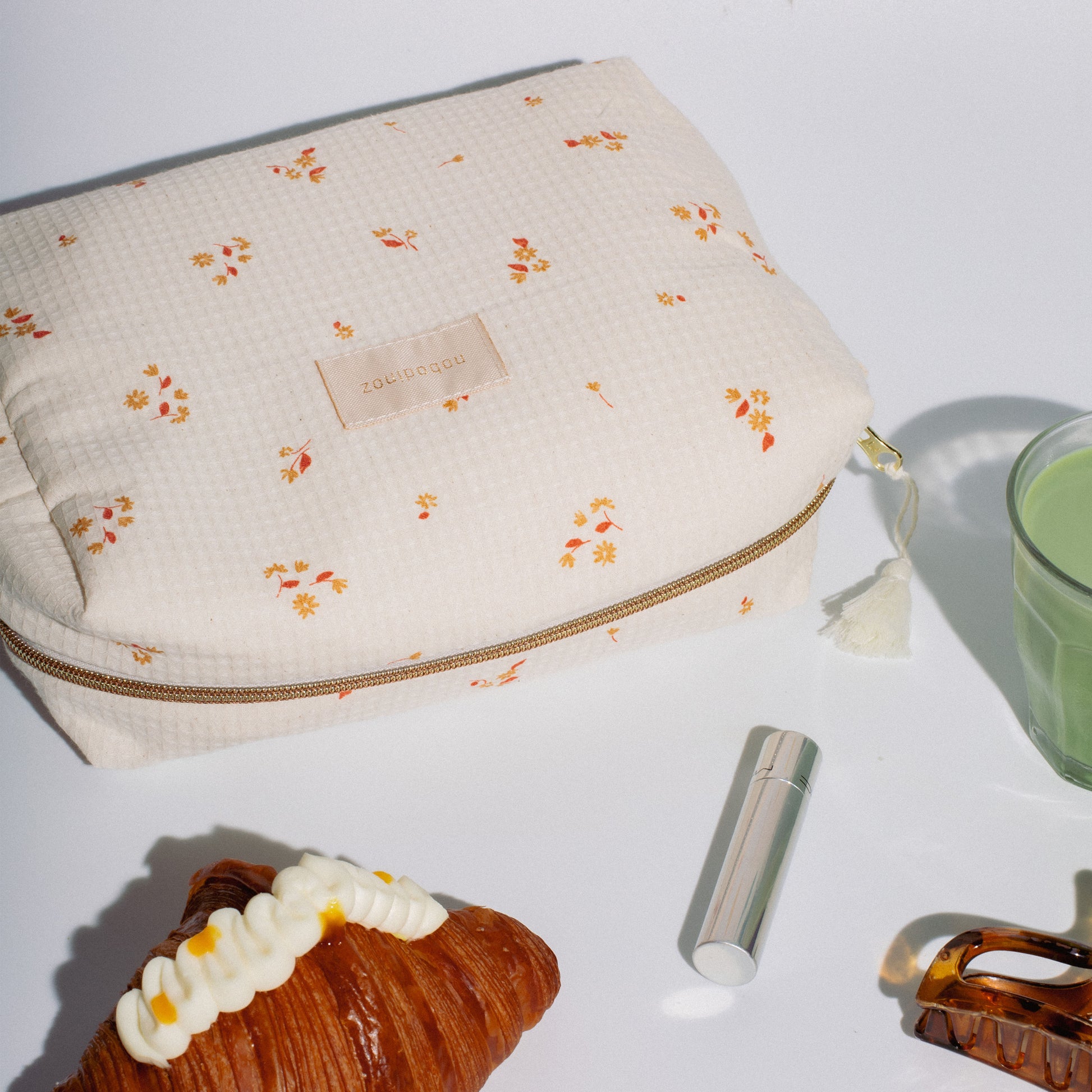 Muy práctico, el neceser de algodón orgánico Diva es resistente al agua gracias a su forro en plástico impermeable. Ideal para ti y tu bebé.
