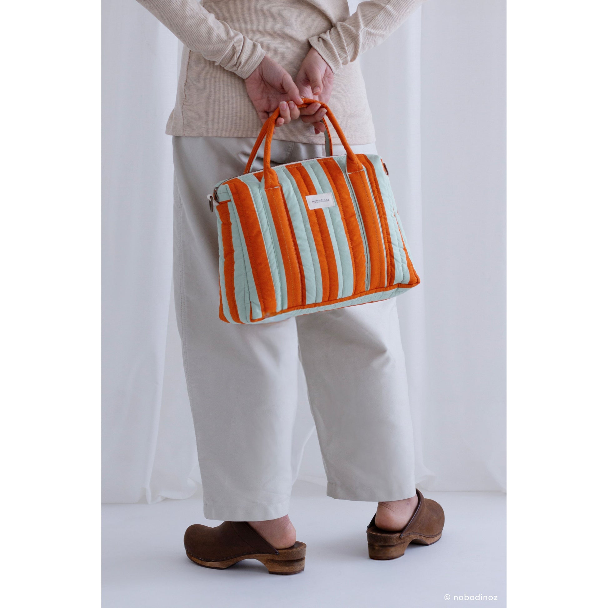 Organizador de cochecito y mini bolso stories limited edition - Green orange stripes