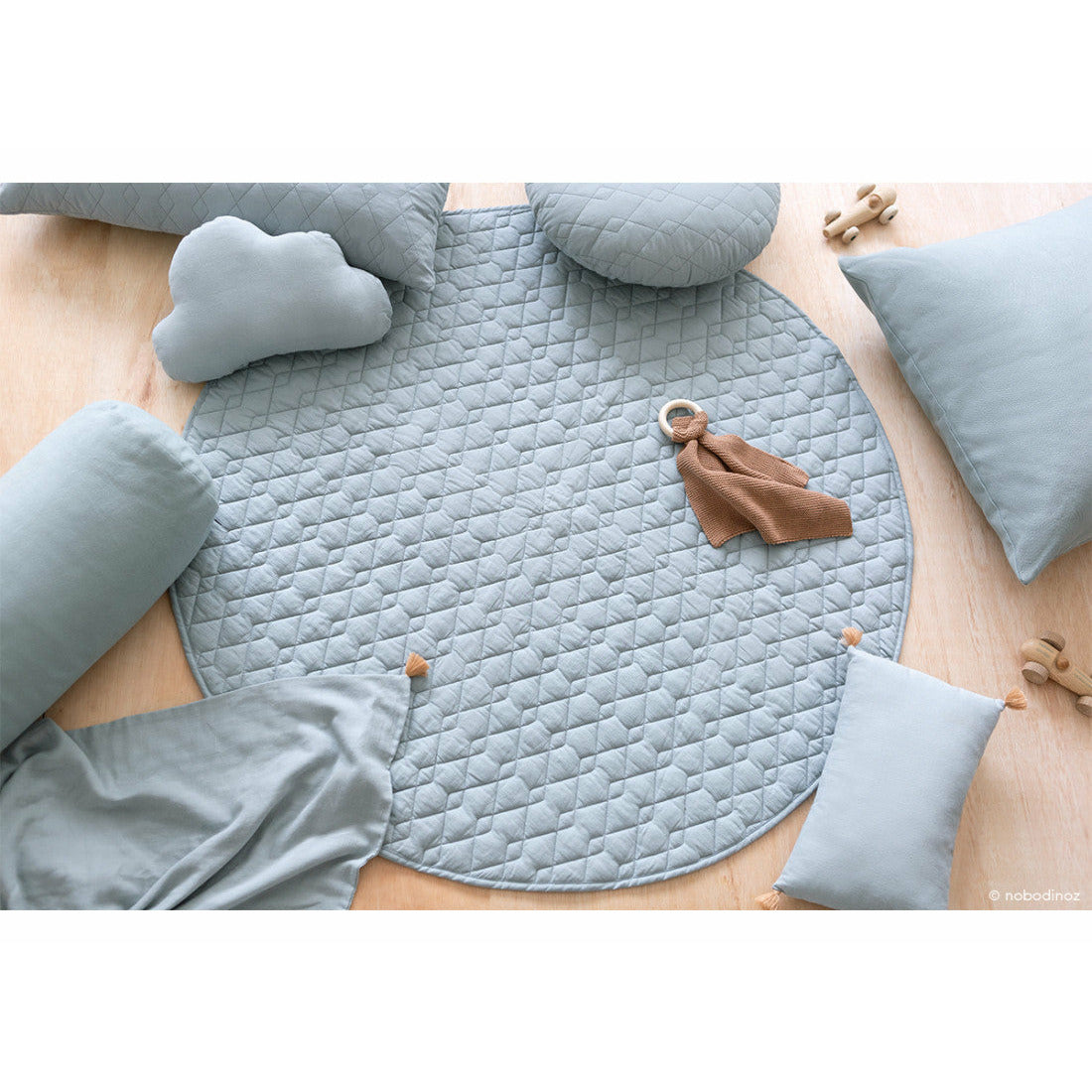 Pon esta alfombra de juego de algodón orgánico en el medio de la habitación de tu peque para que el entretenimiento esté en el centro de su vida y así ayudarle a desarrollar sus sentidos y su imaginación. De forma redonda, es ideal para crear un rincón acogedor dentro del tipi Nevada. Añade unos cojines de forma u otros cojines de algodón orgánico y... ¡ya está!