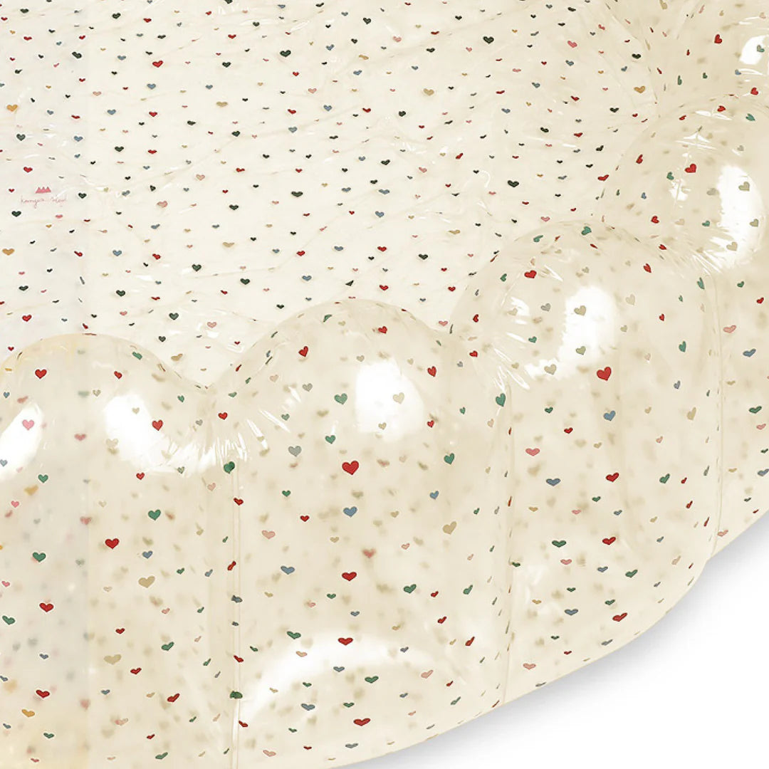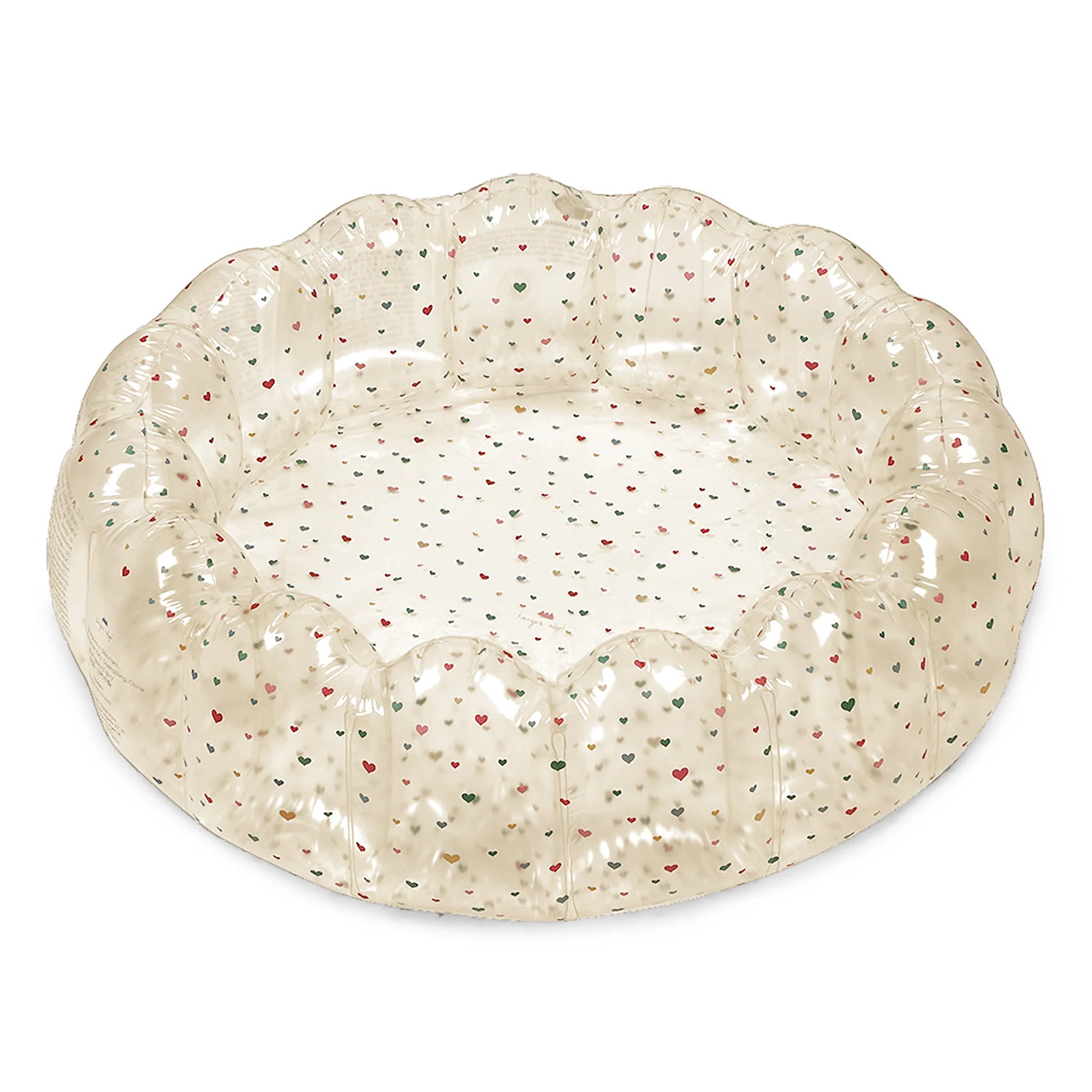 Pequeña piscina hinchable fabricada en PVC resistente. Diseñado con terminaciones festoneadas.