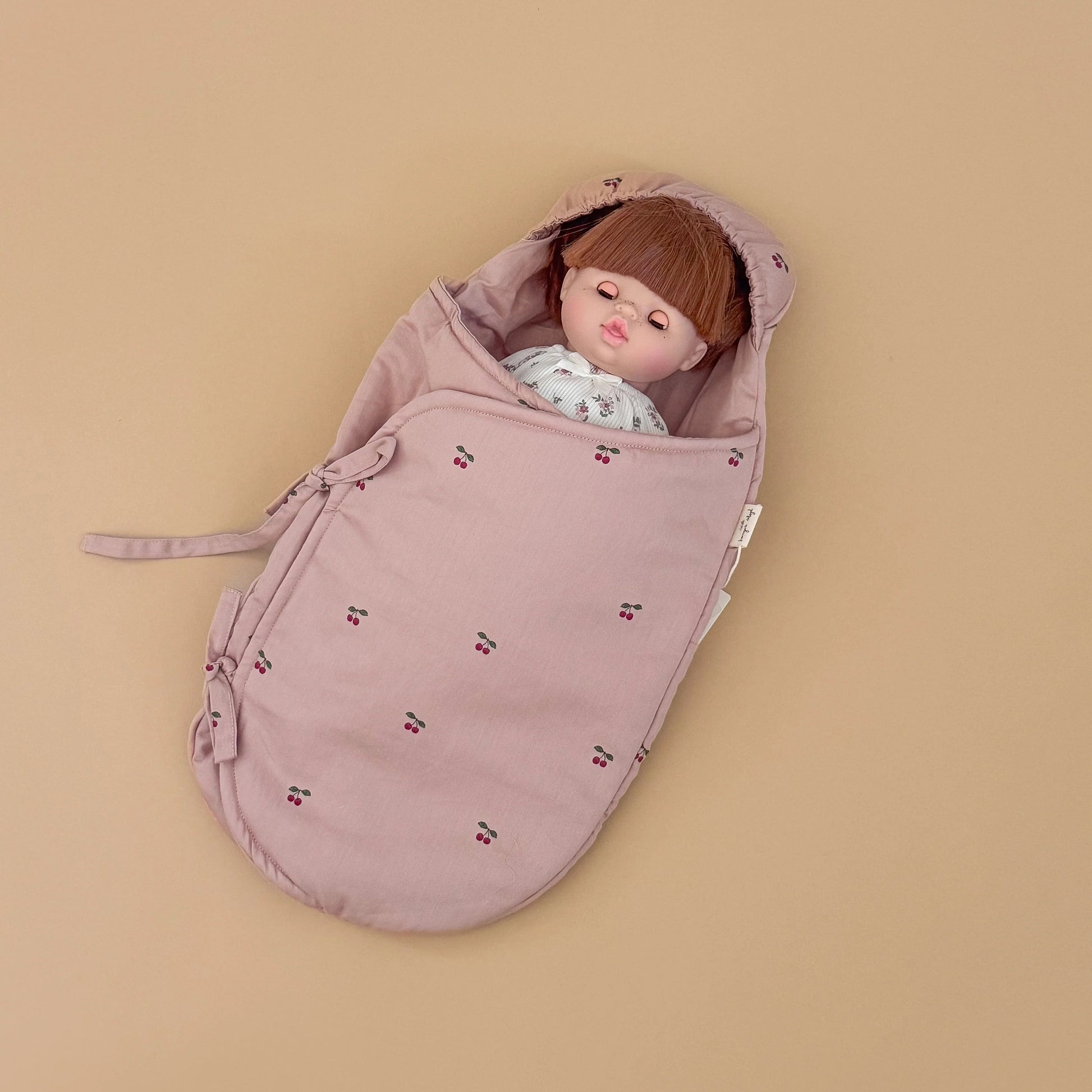 Maravilloso saco de dormir para la muñeca. Hecho con materiales totalmente naturales. Con relleno 100 % algodón orgánico y 100 % poliéster reciclado, puedes estar tranquilo sabiendo que ofreces una opción sostenible para los juguetes de tu hijo.