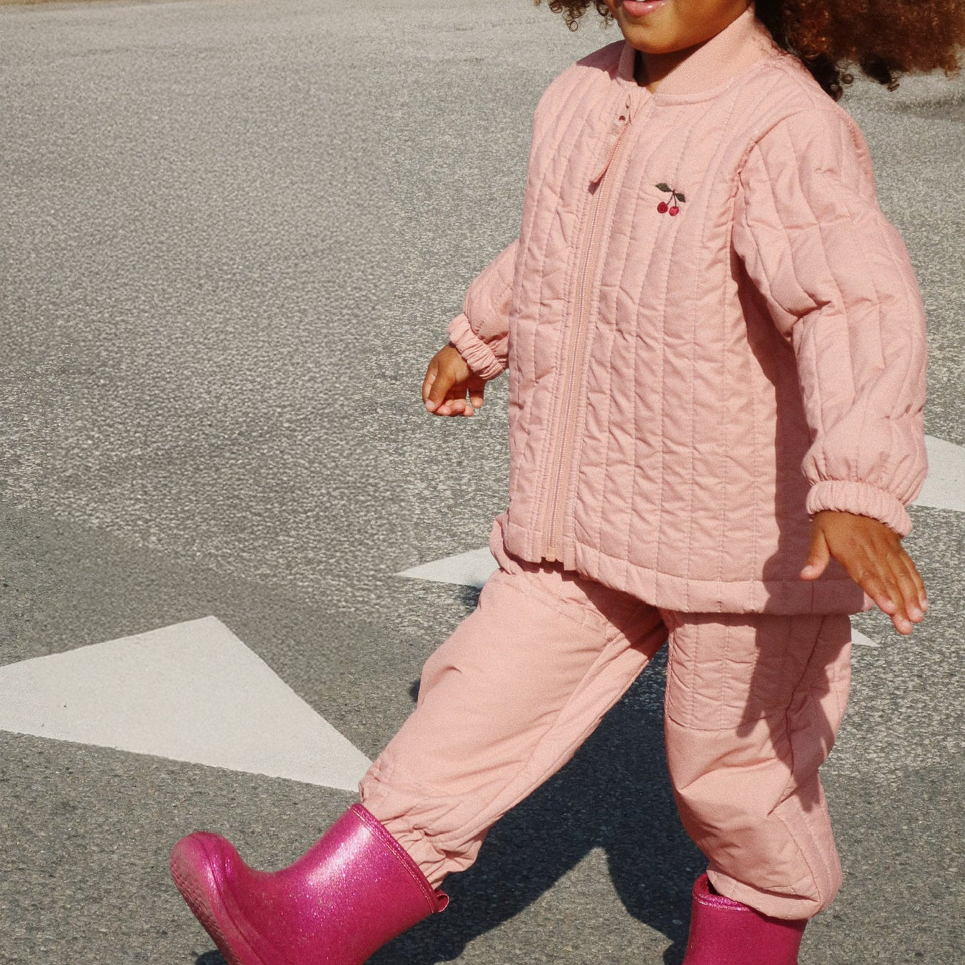 Conjunto de pantalón térmico y chaqueta a juego en calidad acolchada, ligera y cálida. Tratado con un revestimiento ecológico repelente al agua para un rendimiento en todo tipo de clima. Diseñado con una silueta recta y sencilla que es fácil de usar, ya sea solo o en capas debajo de prendas más pesadas en días particularmente fríos.