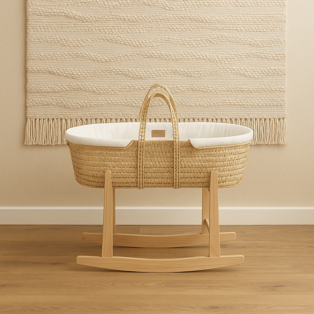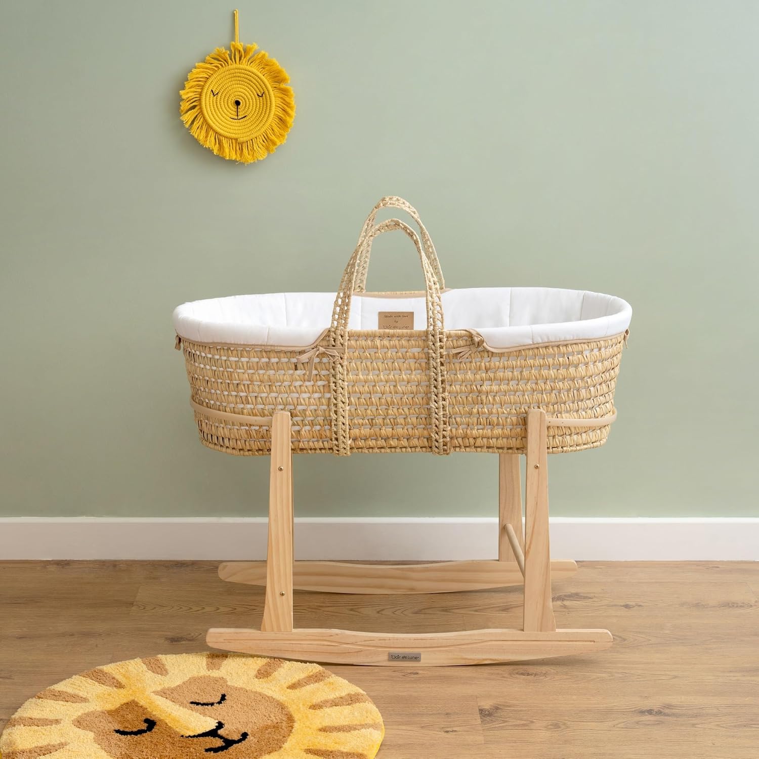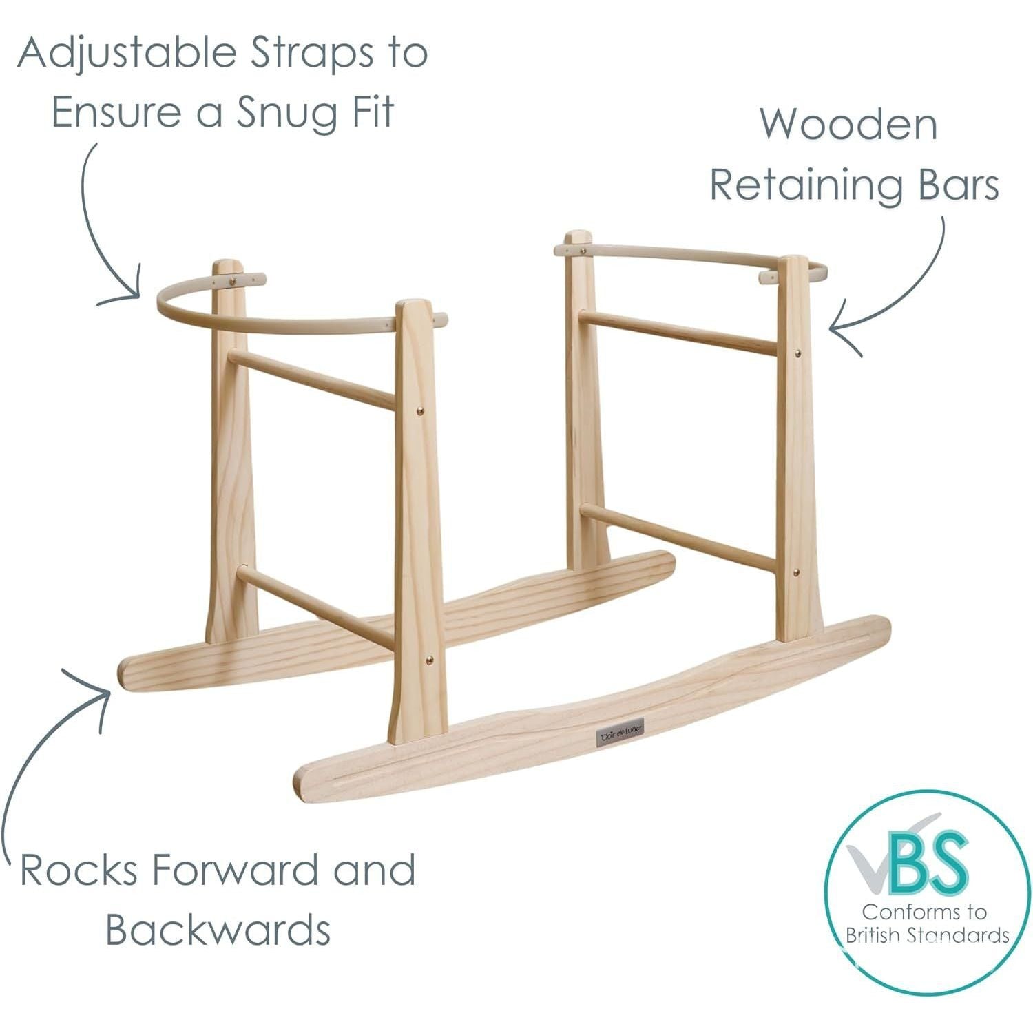 Soporte de madera tipo balancín para moisés. El complemento perfecto para nuestro moisés de fibra natural (moisés no incluido). El balanceo te ayudará a que tu guagua concilie el sueño y a tranquilizarlo cuando esta irritado.